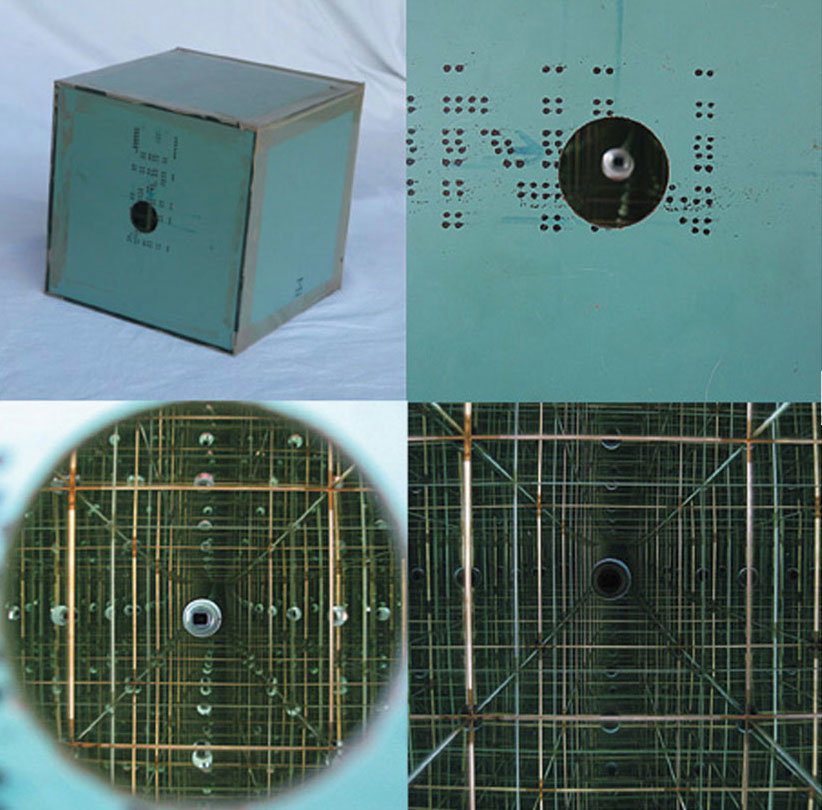 Ivana Stojakovic in installation named "Kocka", "The Cube" searches for the inner-outer relations which she realizes as questioning the (un)confined and (un)conditional human freedom, both physical and spiritual. Precise dimensions, but with seamy, unrefined appearance Stojakovic's cube clearly alludes to the moment of limited, encumbered, scruffy, decaying façade, which stands for a diametrically opposite to what its magical inside has hidden, so the observer can peek inside, a his/her look, i.e. his eye, looking at mirrors will be multiplied, released and will be free and, like Radon's magical eye, move towards the infinity. Such differentiation/oppositeness to the outer, the inner still cannot live and exist without it. The outer surface becomes important since it protect it physically, and through the intervention of the view outside, it is necessary, for it fulfills and assigns a specific value and someone can associate it with romantically unhindered, intuitive inner eye, and someone may have in mind a discomforting system of control with Orwell's Big Brother